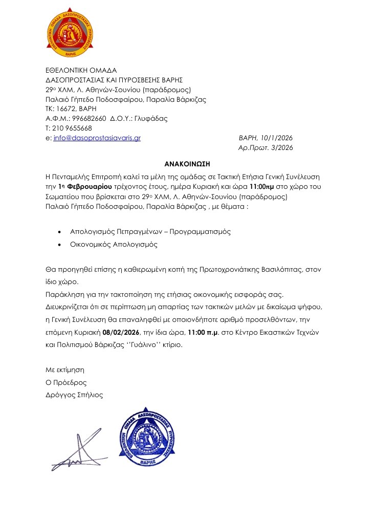 ΑΝΑΚΟΙΝΩΣΗ ΤΑΚΤΙΚΗΣ ΕΤΗΣΙΑΣ ΓΕΝΙΚΗΣ ΣΥΝΕΛΕΥΣΗΣ 1/2/2026